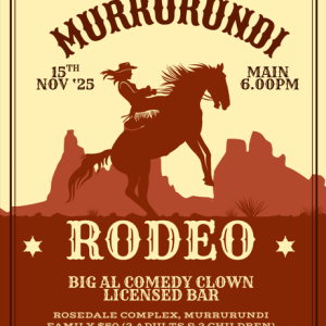 Murrurundi Rodeo Full Rodeo Program commenced 10.30am & main event 6pm. Tickets available at the gate; Family $50 (2 adults & 2... 15 Nov All Day