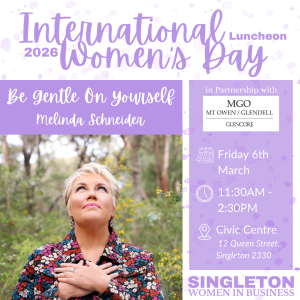 International Women’s Day Luncheon Business Singleton is proud to present award-winning Australian performer Melinda Schneider as the keynote speaker for our 2026 International Women’s... 06 Mar 11:30 am - 2:30 pm