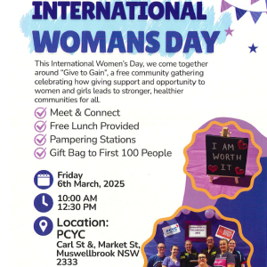 International Womens Day This International Women’s Day, we come together around “Give to Gain”, a free community gathering celebrating how giving support and... 06 Mar 10:00 am - 12:30 pm