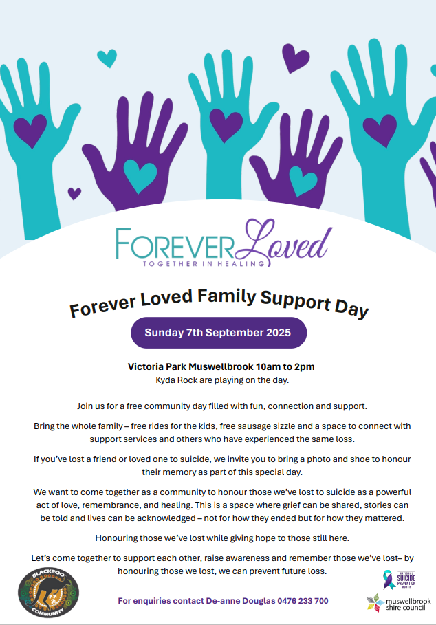 Join us for a free community day filled with fun, connection and support at Victoria Park, Muswellbrook on Sunday 7 September from 10am – 2pm.