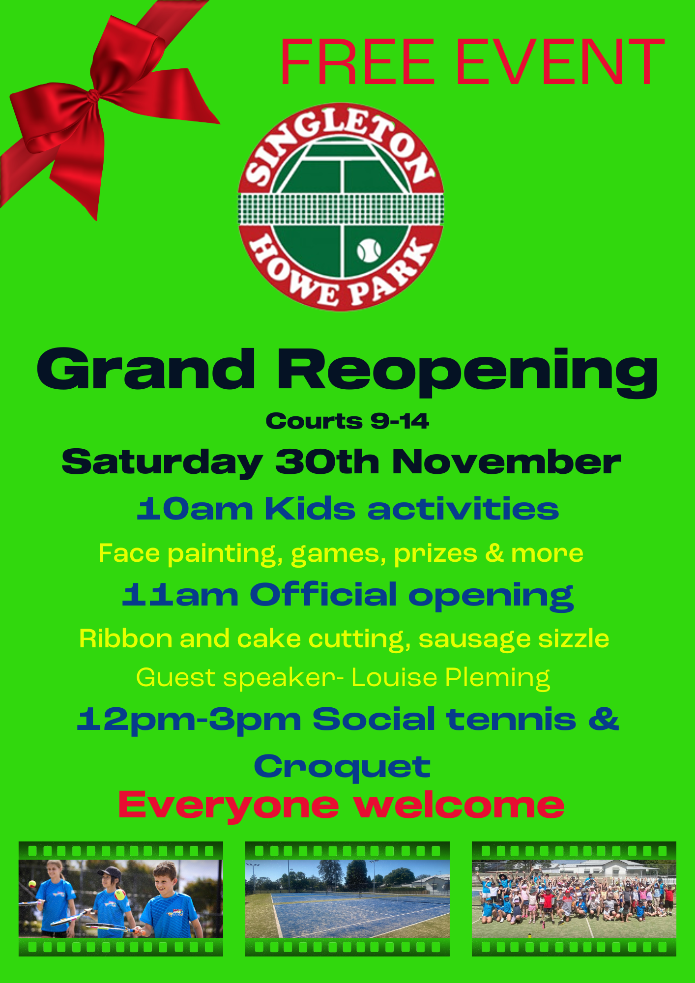 Come along and celebrate the reopening of the courts this Saturday 30th November at our free event.