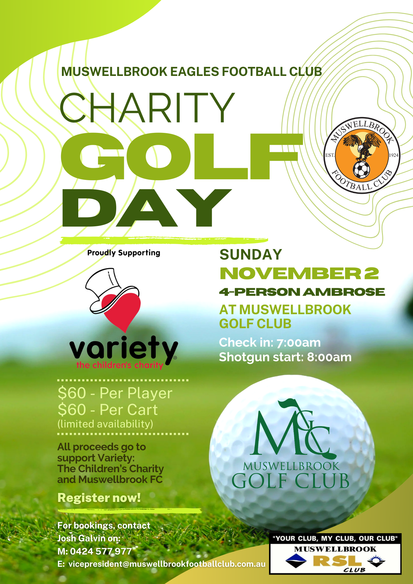 Join us for a fantastic day on the greens, proudly supporting Variety: The Children’s Charity & Muswellbrook FC!