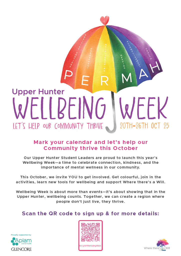 Our Upper Hunter Student Leaders are proud to launch this year’s Wellbeing Week—a time to celebrate connection, kindness, and the importance of mental wellness in our community.